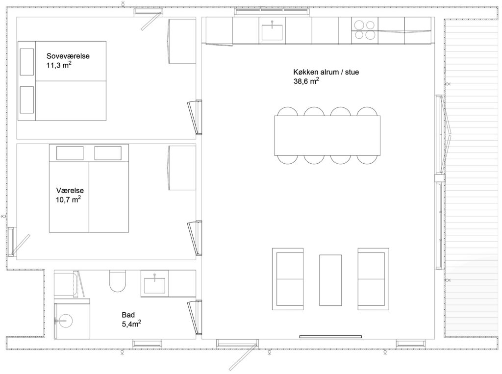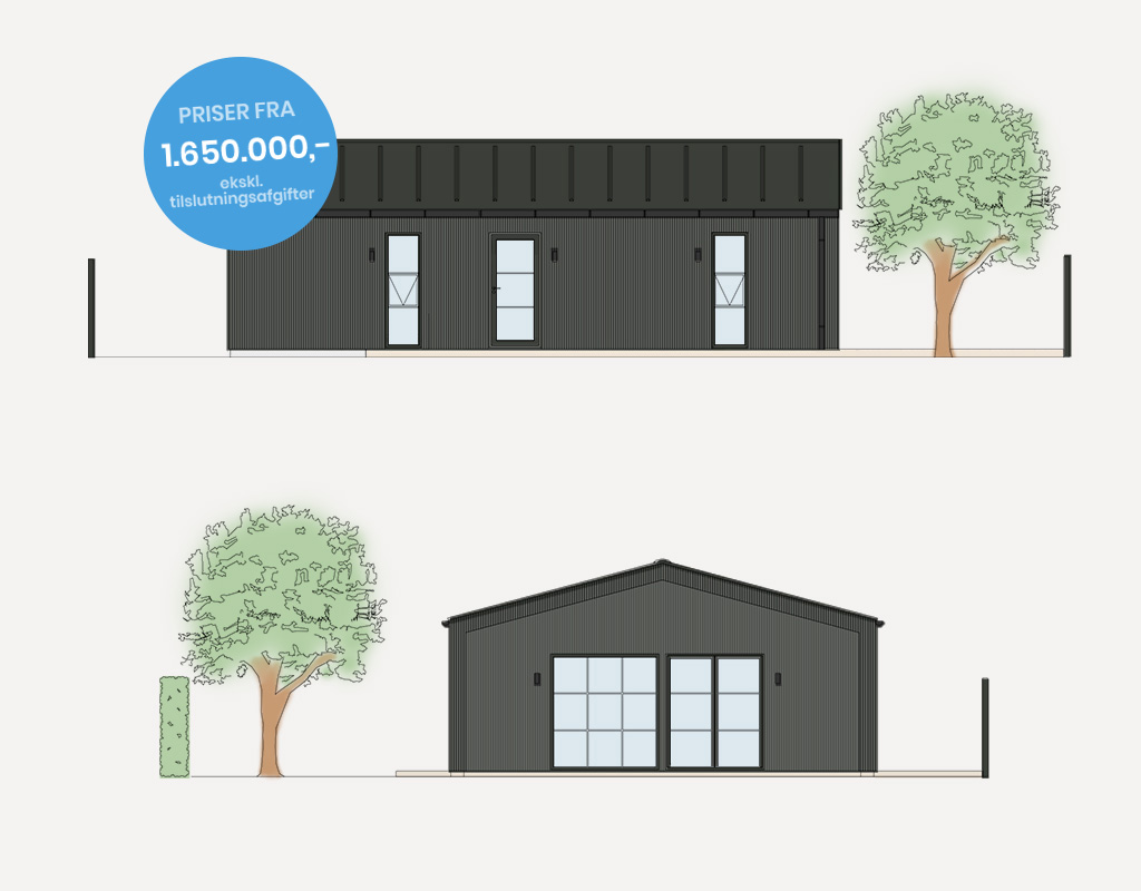 Nøglefærdigt sommerhus på 76m2 med to soveværelser. Priser fra 1.650.000 ekskl. tilslutningsafgifter